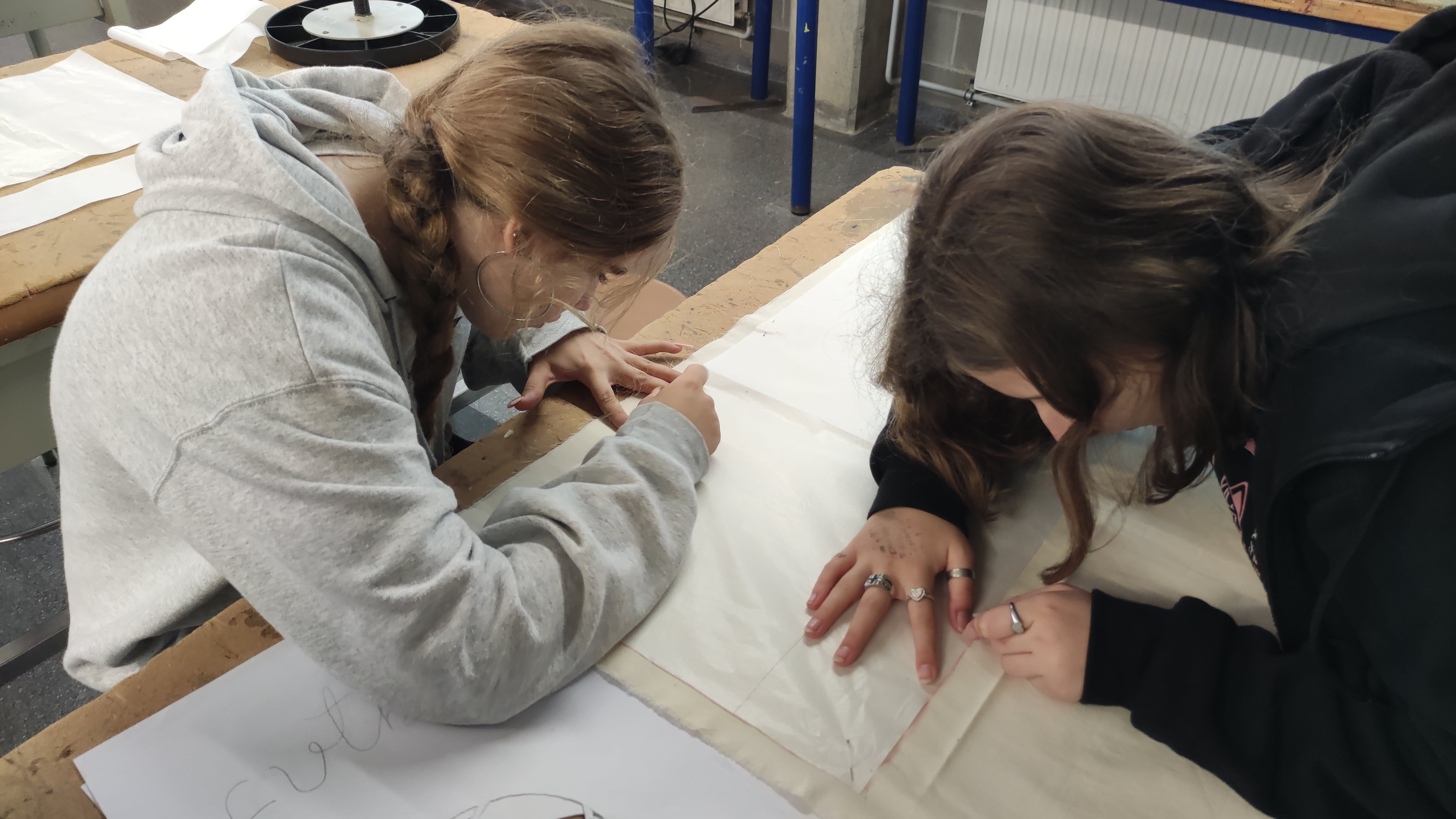 Es pot fer utilitzant paper de patró si el volem repetir o directament sobre la tela. Les mides es poden treure d'una bossa model deixant marge per les vores o bé calculant-ho en funció de la mida que vulguem que tingui la bossa. Caldrà marcar la peça de la bossa i de les nances. Podem fer també una butxaca en el seu interior er portar les piles que connectaran les peces tecnològiques.