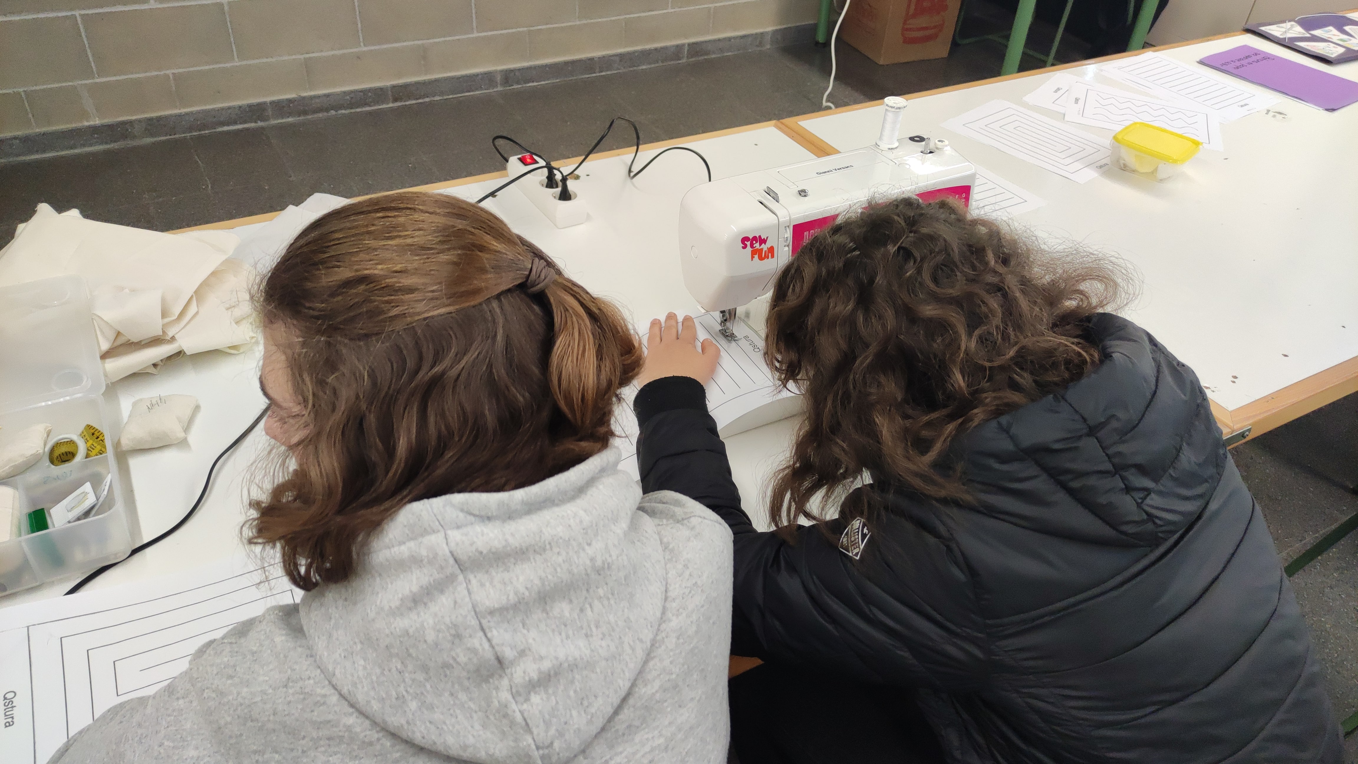 Abans de cosir la roba amb la màquina de cosir, primer cal aprendre com funciona. Per fer-ho, primer practiquem amb plantilles de paper.