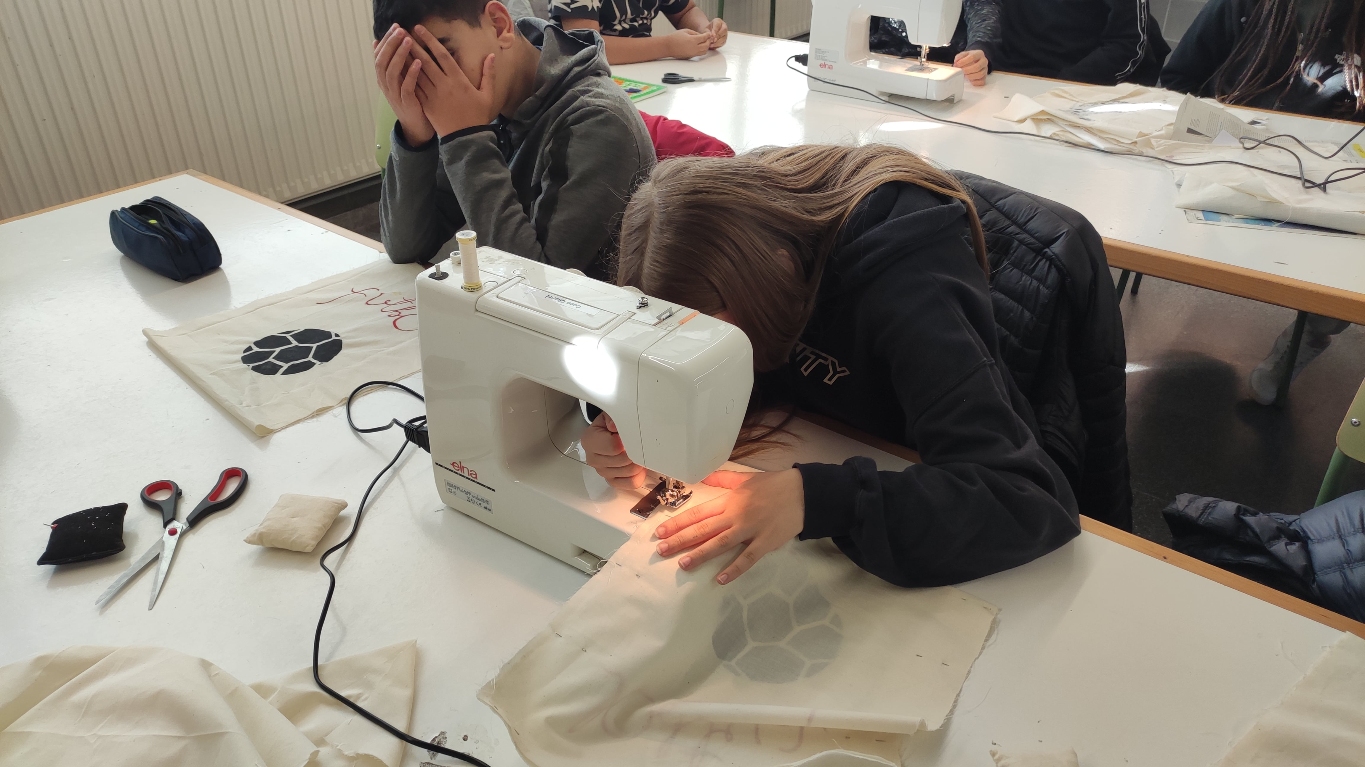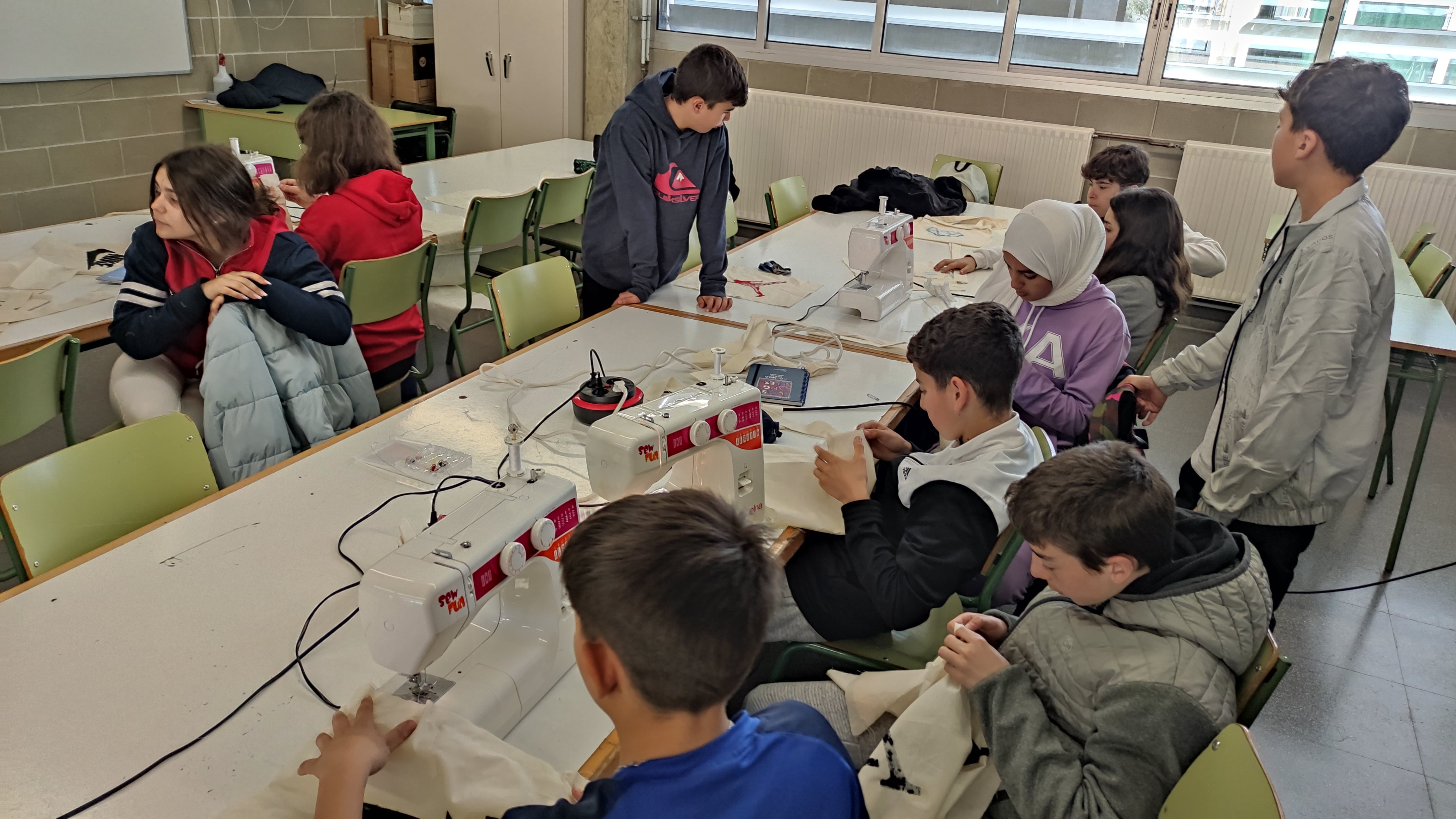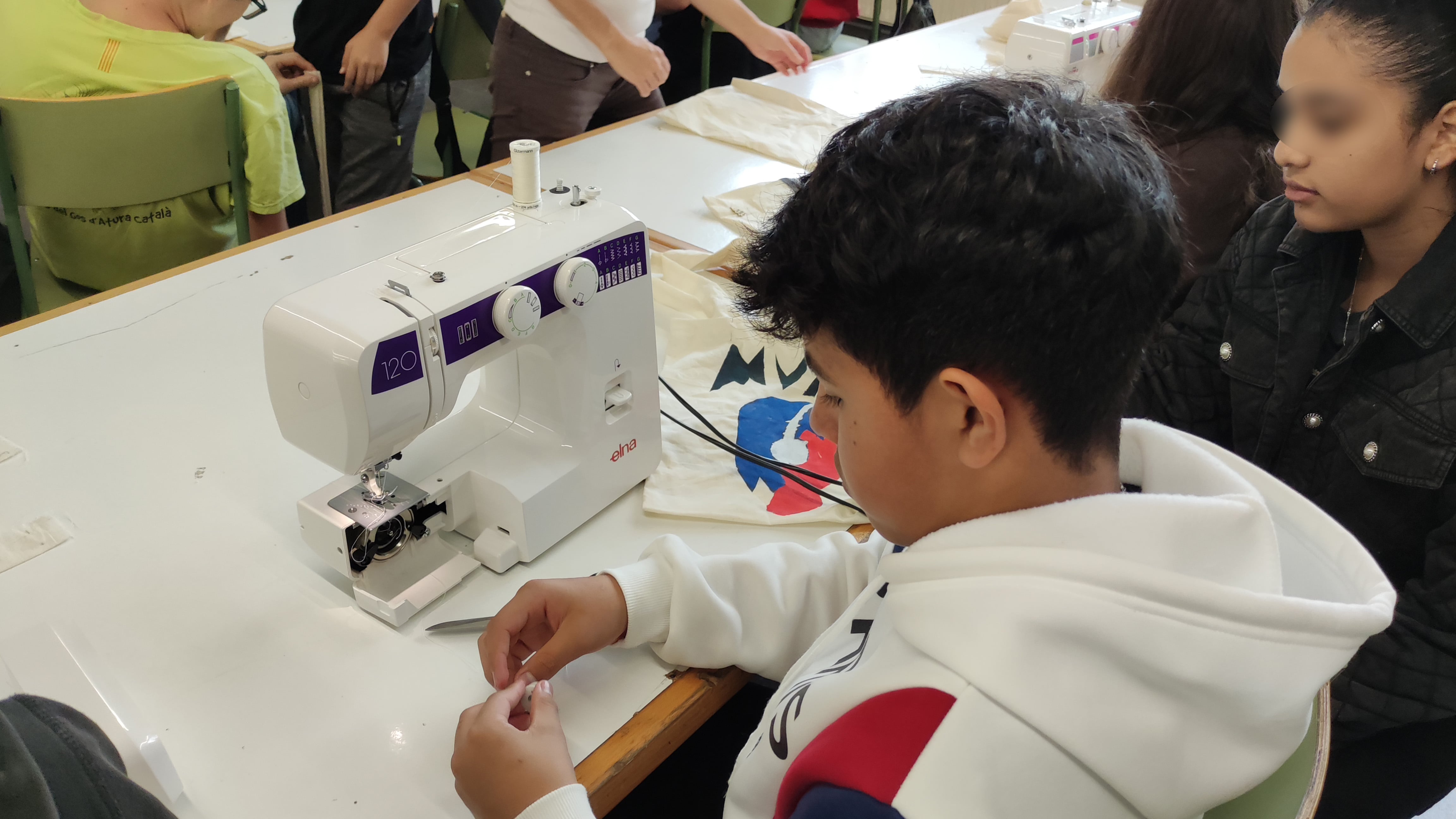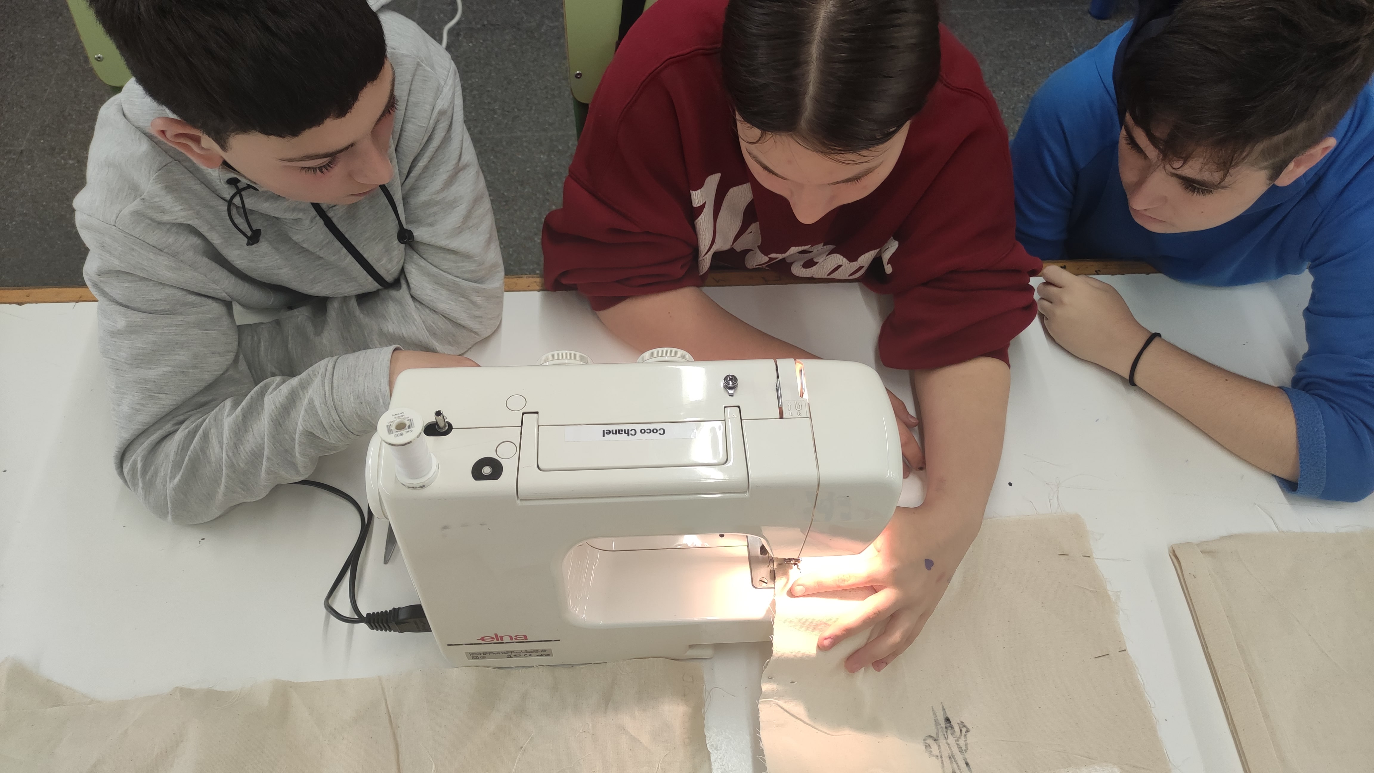 Un cop ja es coneix el funcionament de la màquina de cosir, cal cosir totes les peces de la roba. En el cas de la totebag: la base de la bosa i les nances.