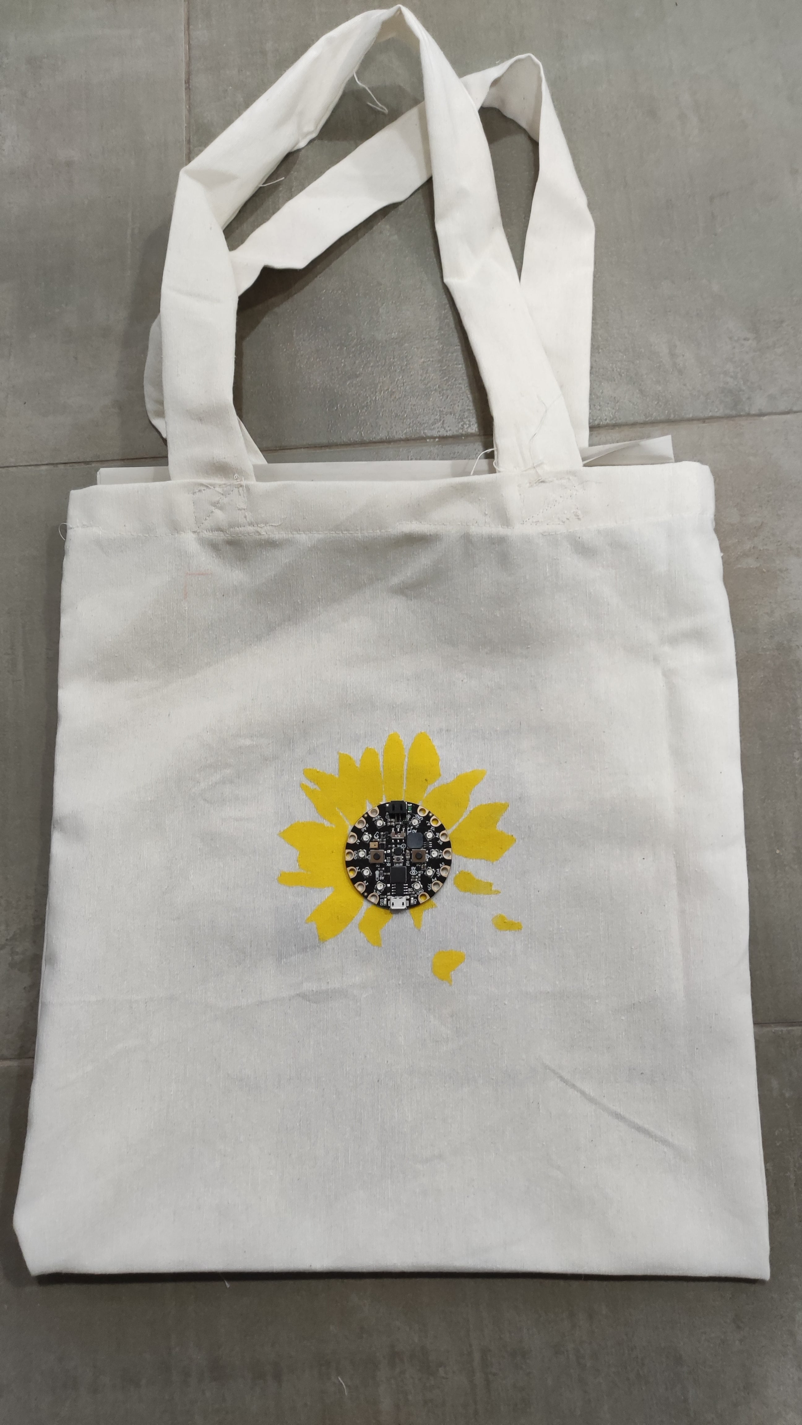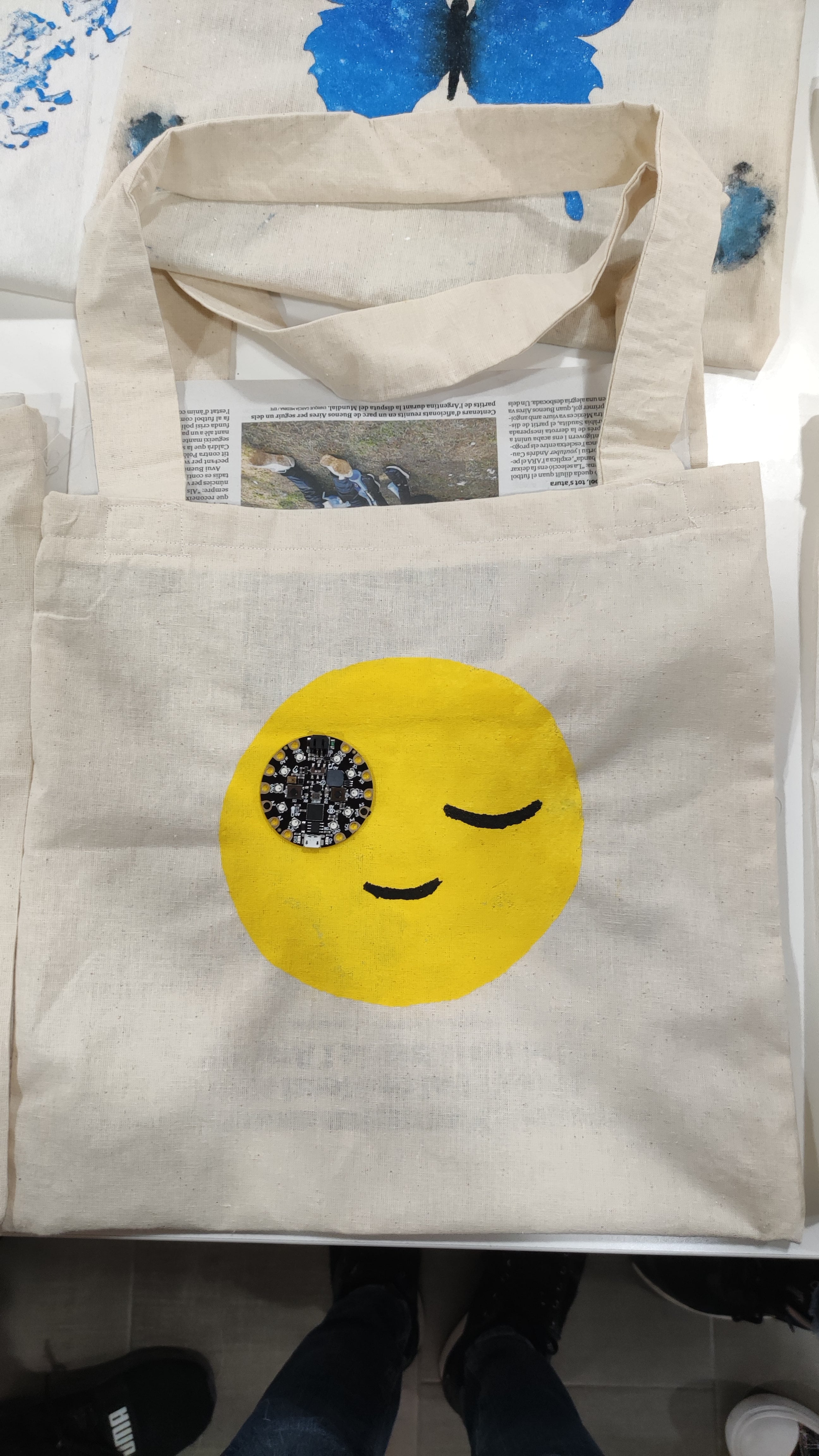El tercer dia doncs, ja van portar imprès el dibuix del qual en van poder fer el negatiu. Van aprendre la tècnica d'estampar la roba i cadascú amb el seu negatiu i els colors escollits va poder plasmar el seu disseny en la bossa. També van aprendre nocions bàsiques de com programar la placa perquè fes llums i música.